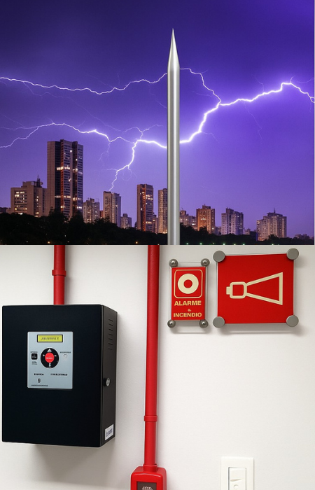 O Sistema de Proteção contra Descargas Atmosféricas (SPDA) verifica se o para-raios está em conformidade com a NBR 5419, avaliando o risco de descargas atmosféricas e garantindo a segurança da edificação contra raios. O segundo serviço avalia se o Sistema de Detecção e Alarme de Incêndio (SDAI) atende aos requisitos da NBR 17240, incluindo sensores, sirenes e painéis, garantindo resposta rápida em caso de incêndio.
